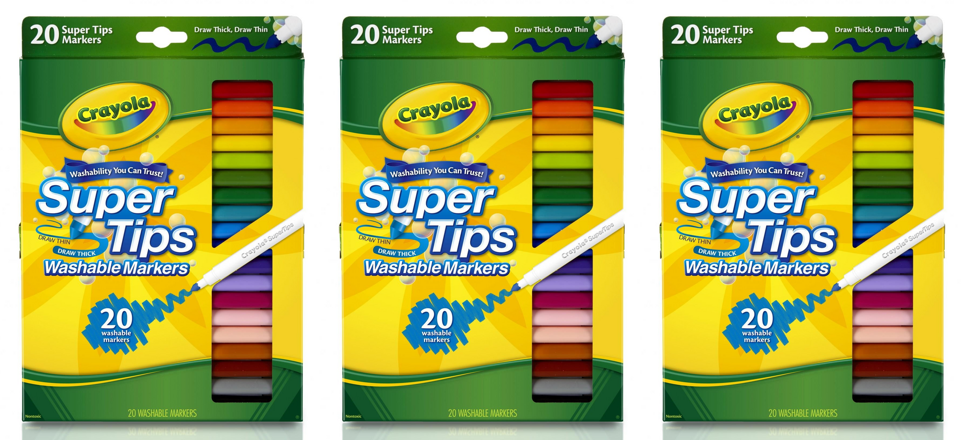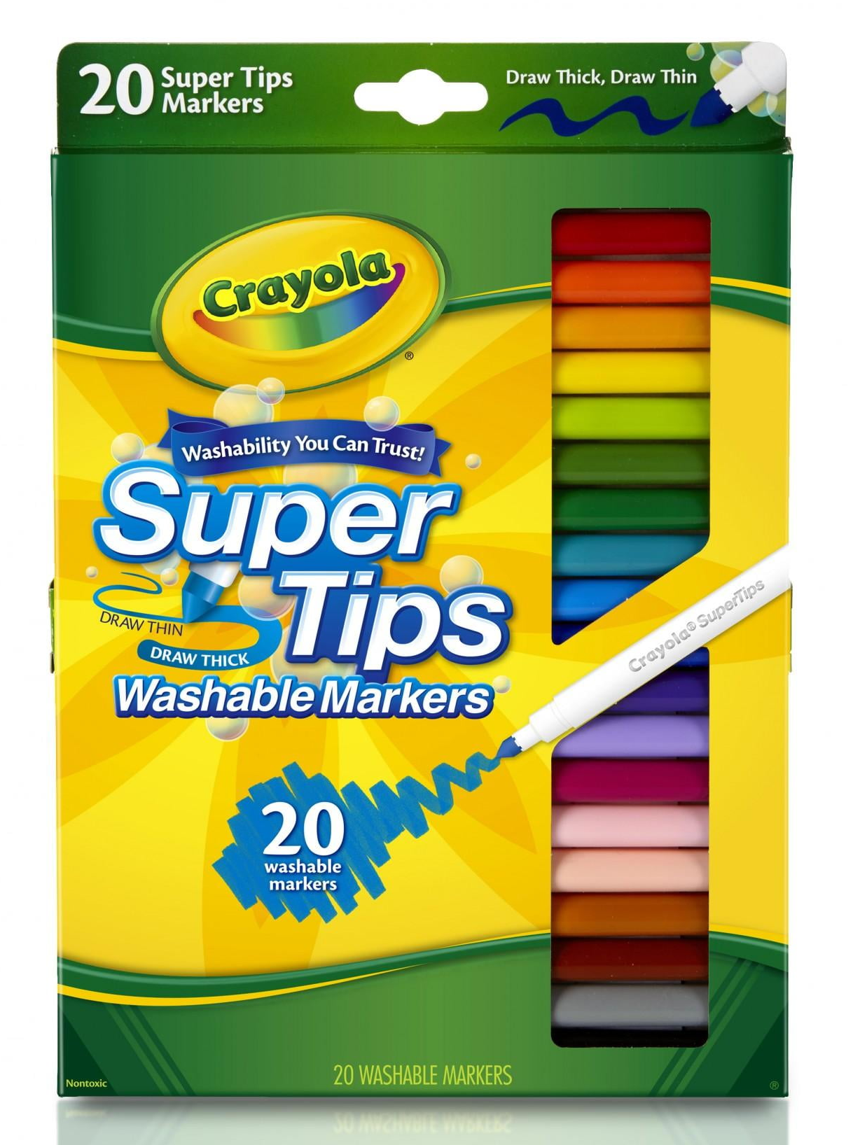- Crayola Super Tips Markers in the 20ct box are a great complement to kid and adult coloring books.