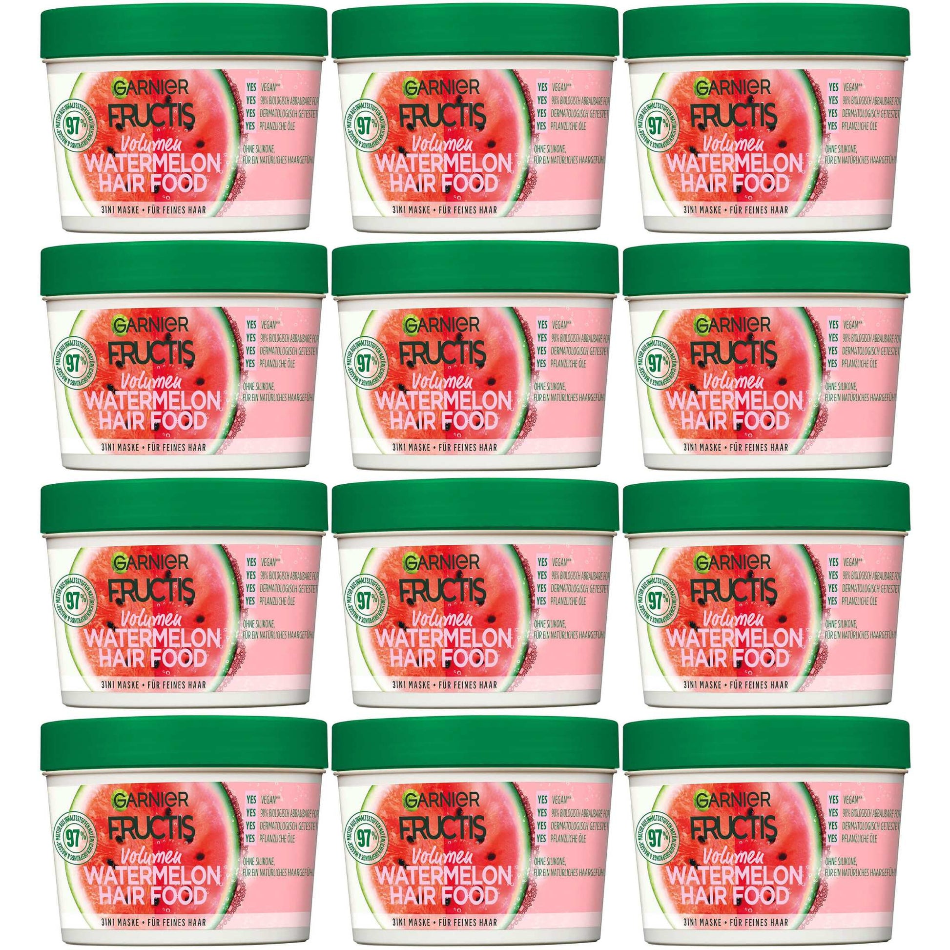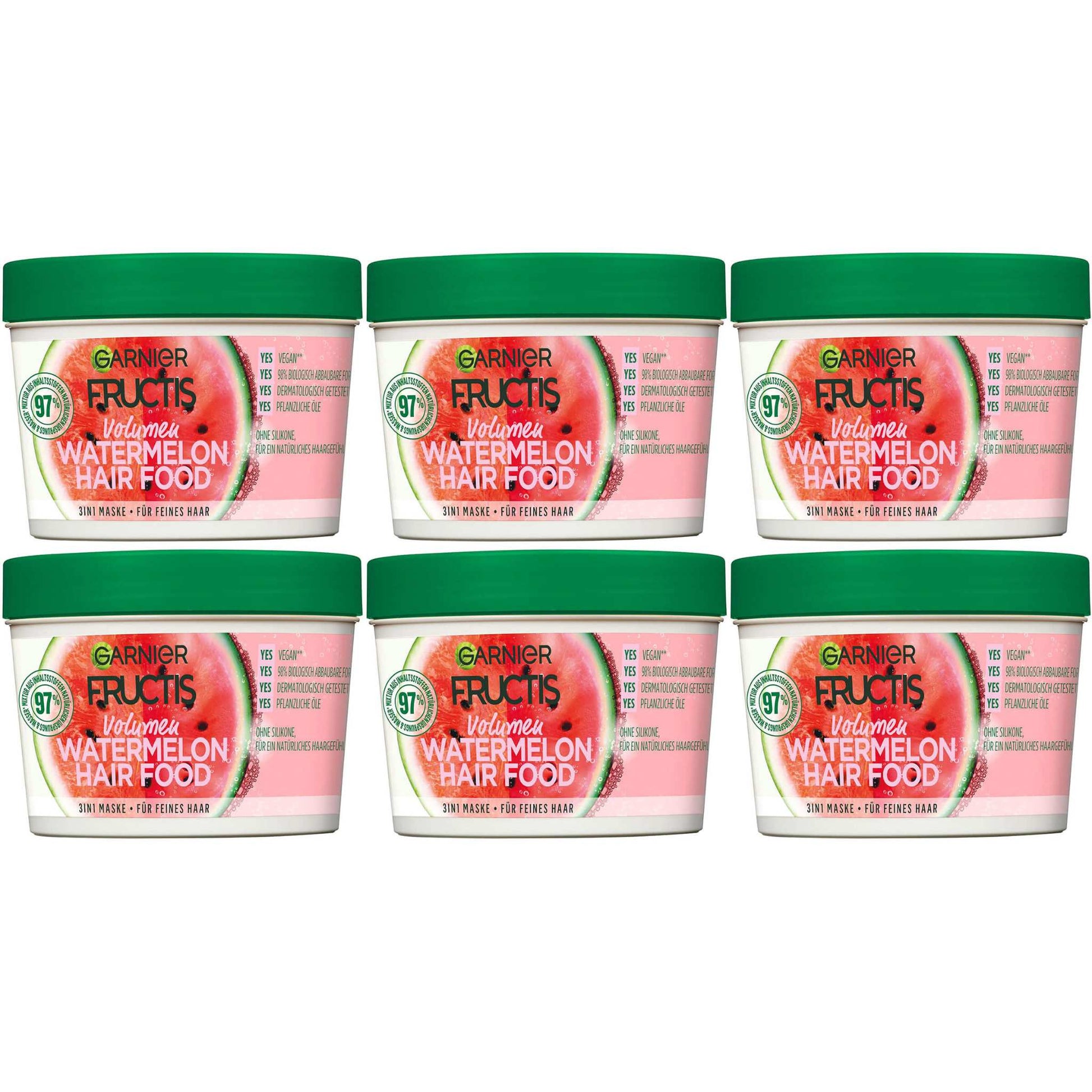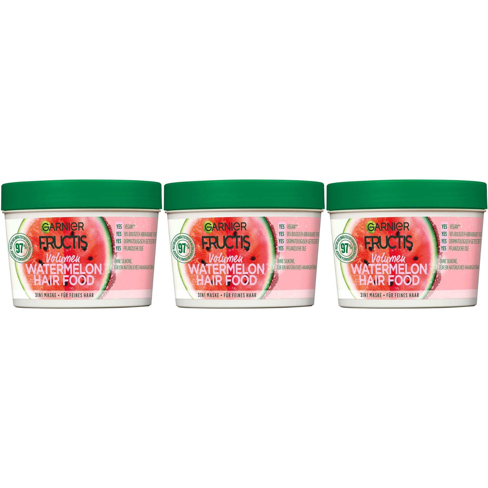 - The Fructis Volume Watermelon Hair Food 3-in-1 mask provides a naturally gentle hair feeling and is particularly suitable for fine hair.