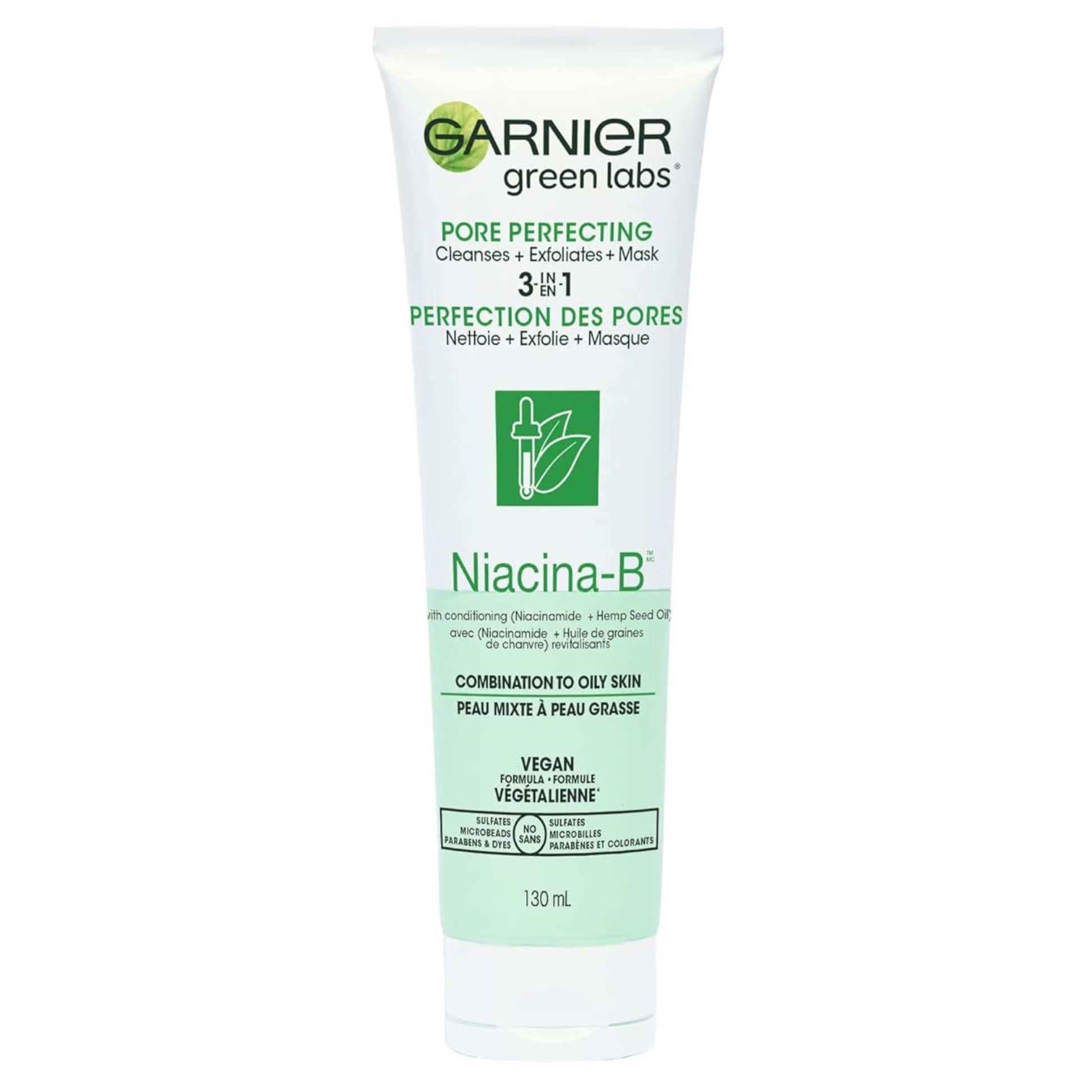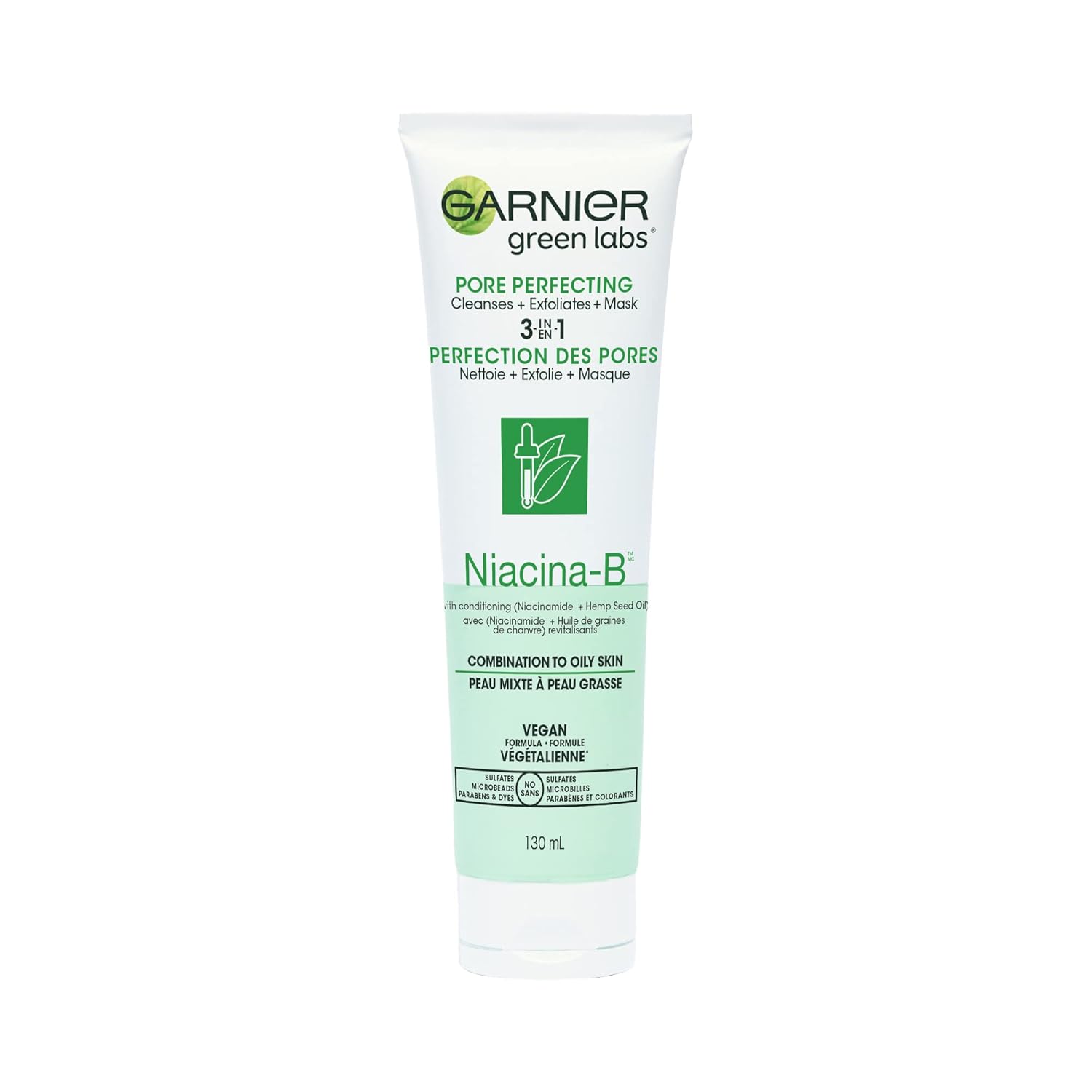 - Garnier Green Labs Pore Perfecting 3-in-1 Face Wash + Exfoliator + Face Mask is a scrub-free face wash, gentle exfoliator, and face mask.
