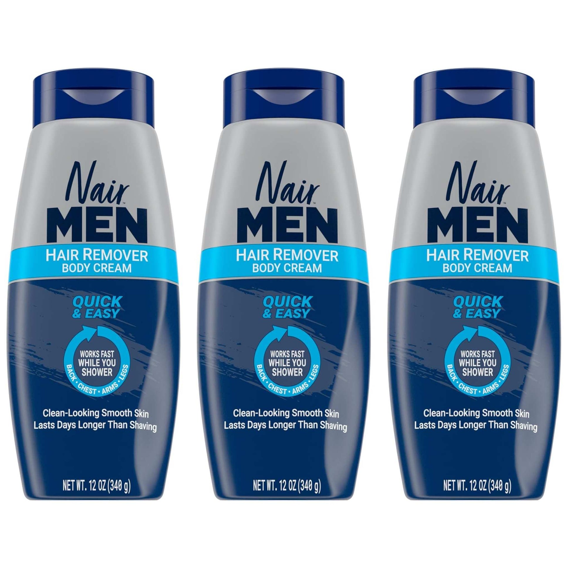- Nair Men Hair Remover Body Cream works fast while you shower to wash away unwanted body hair.