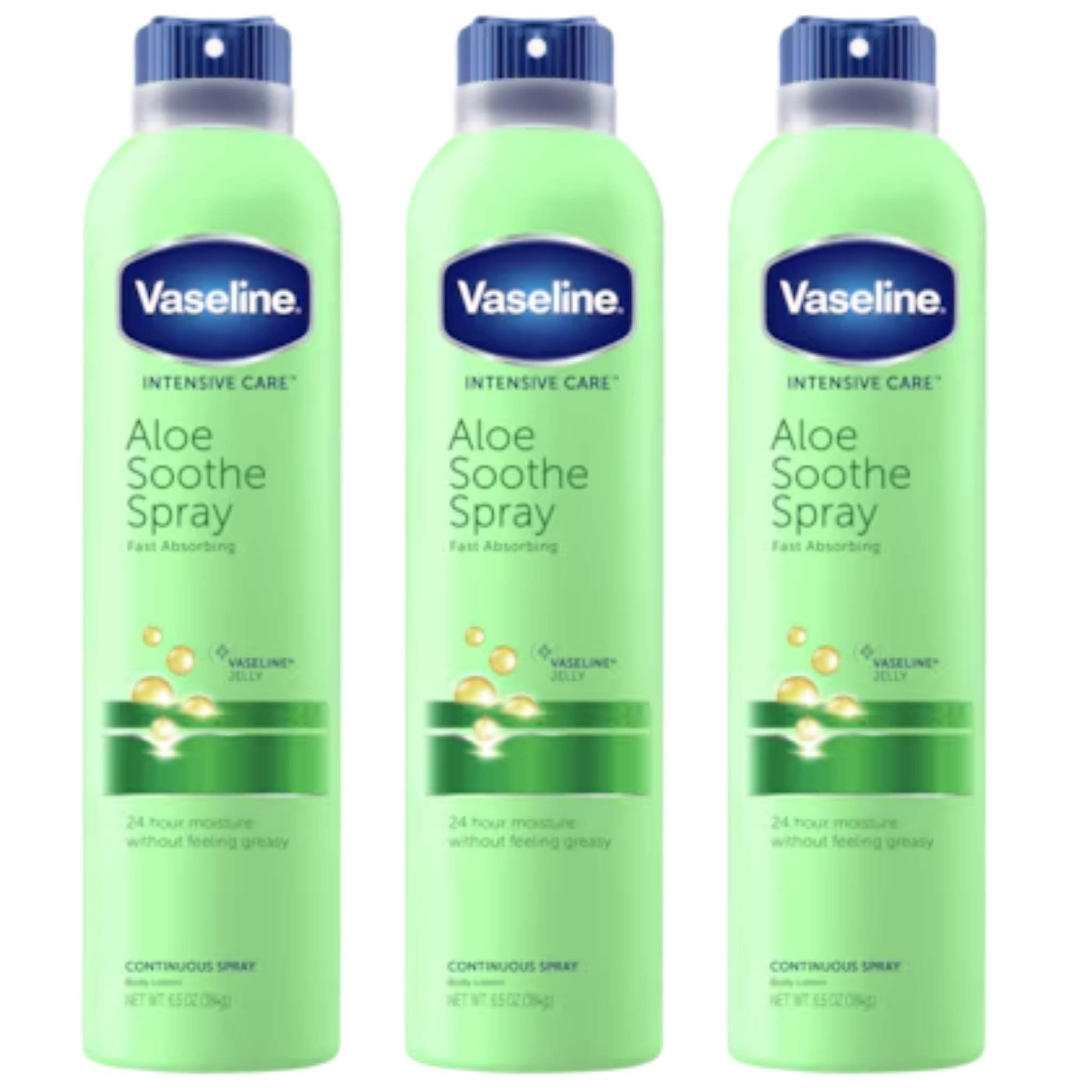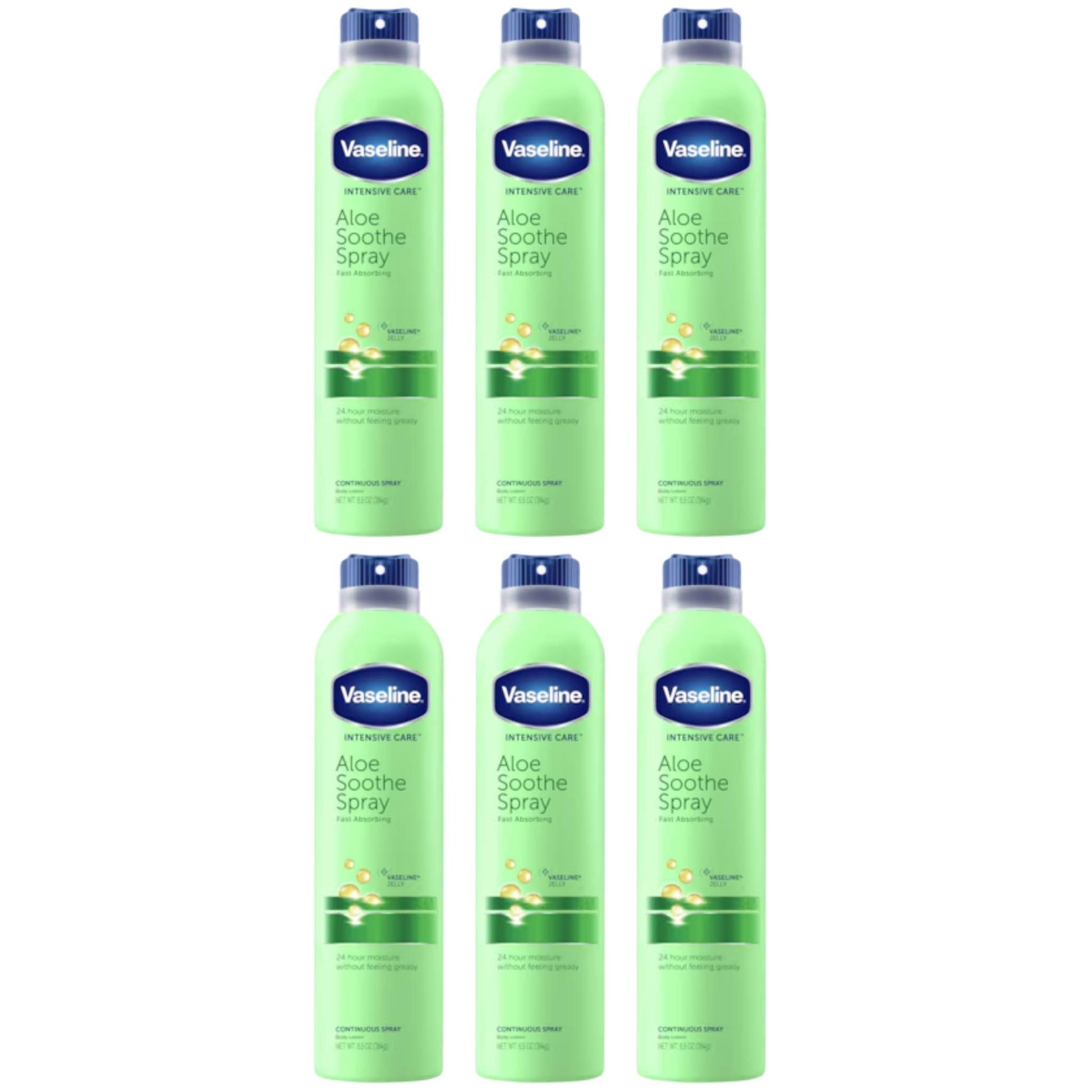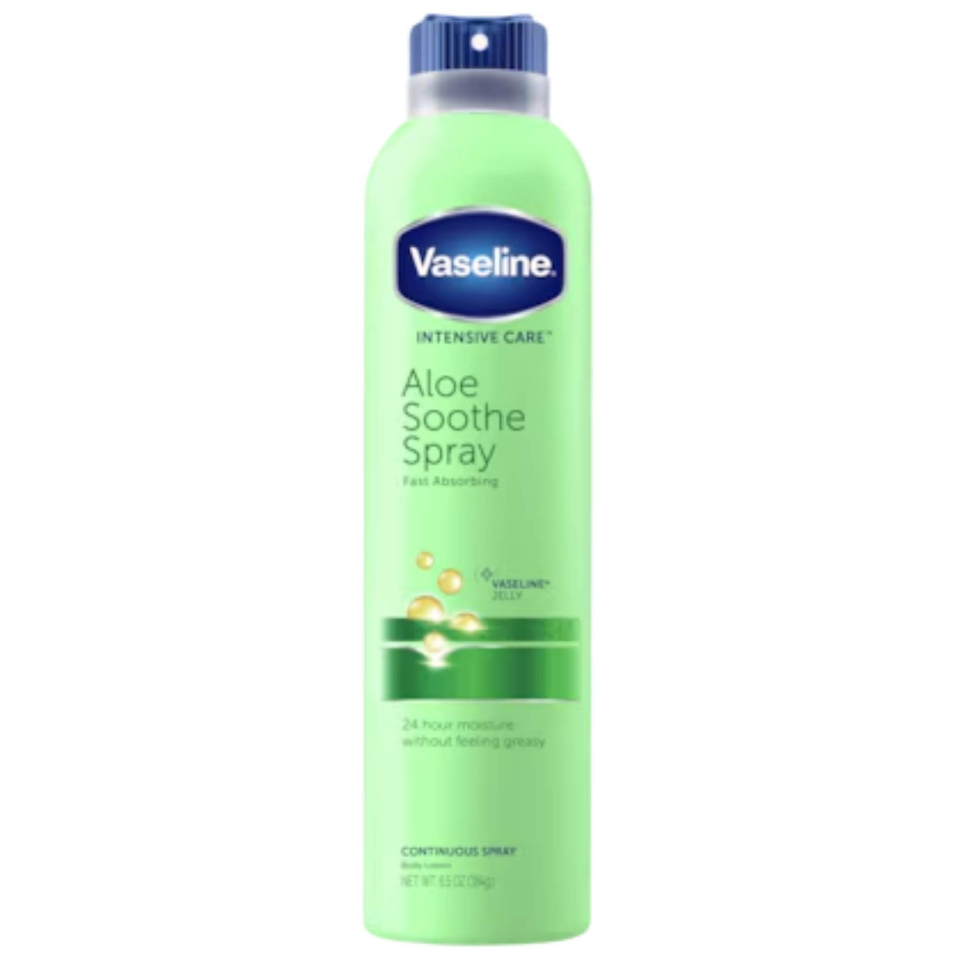 - Vaseline Aloe Soothe Intensive Care Spray Moisturizer, 6.5 Oz nourishes and revitalizes hair from root to tip.